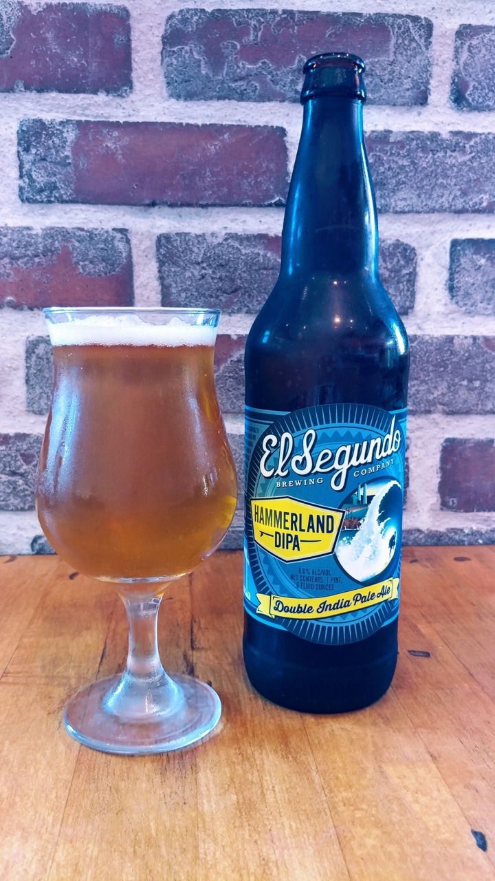El Segundo Brewing’s ridiculously smooth “Hammerland DIPA”, hits you with flavor right away: bright, clean, crisp followed with a blueberry finish, exactly what you would imagine out of the Mosaic, Simcoe hops.