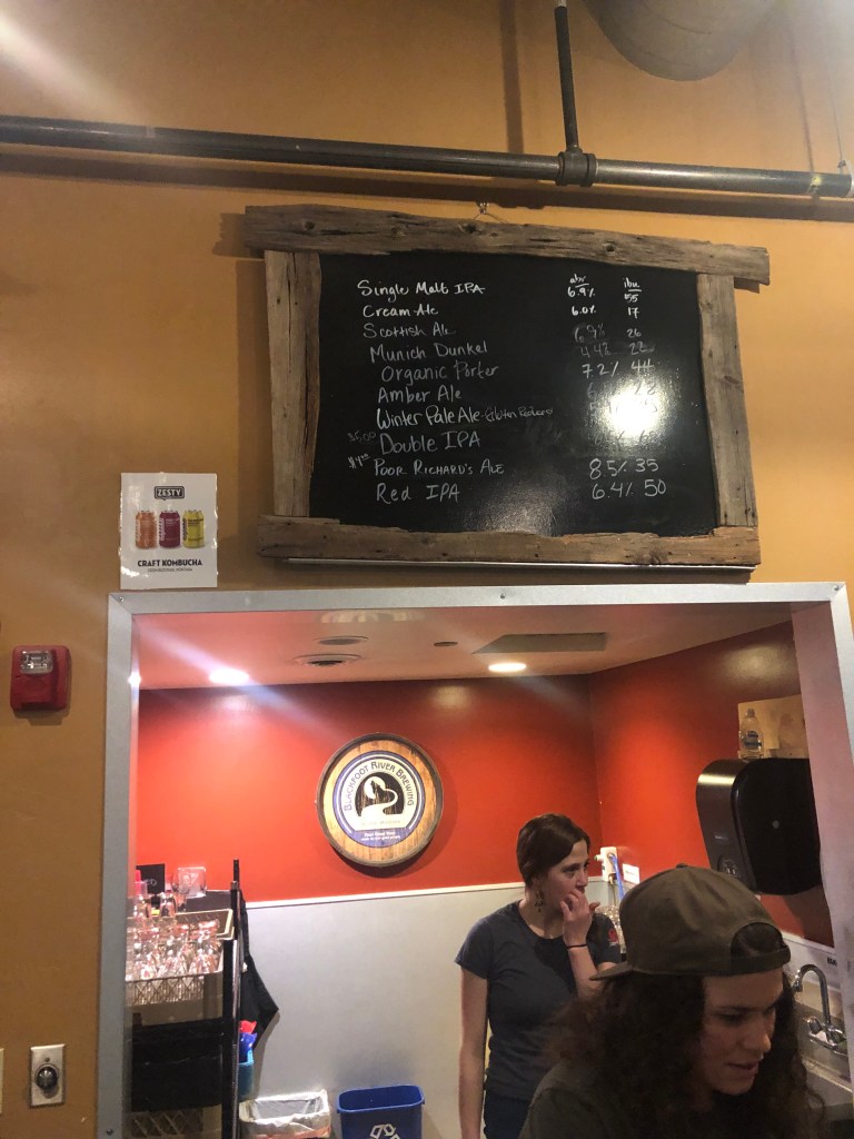 It was packed at the brewery by the time I arrived around shortly after 7 p.m. (probably because they close at 8 p.m.). The atmosphere was cool with two bar tops, one when entering, and one upstairs.
