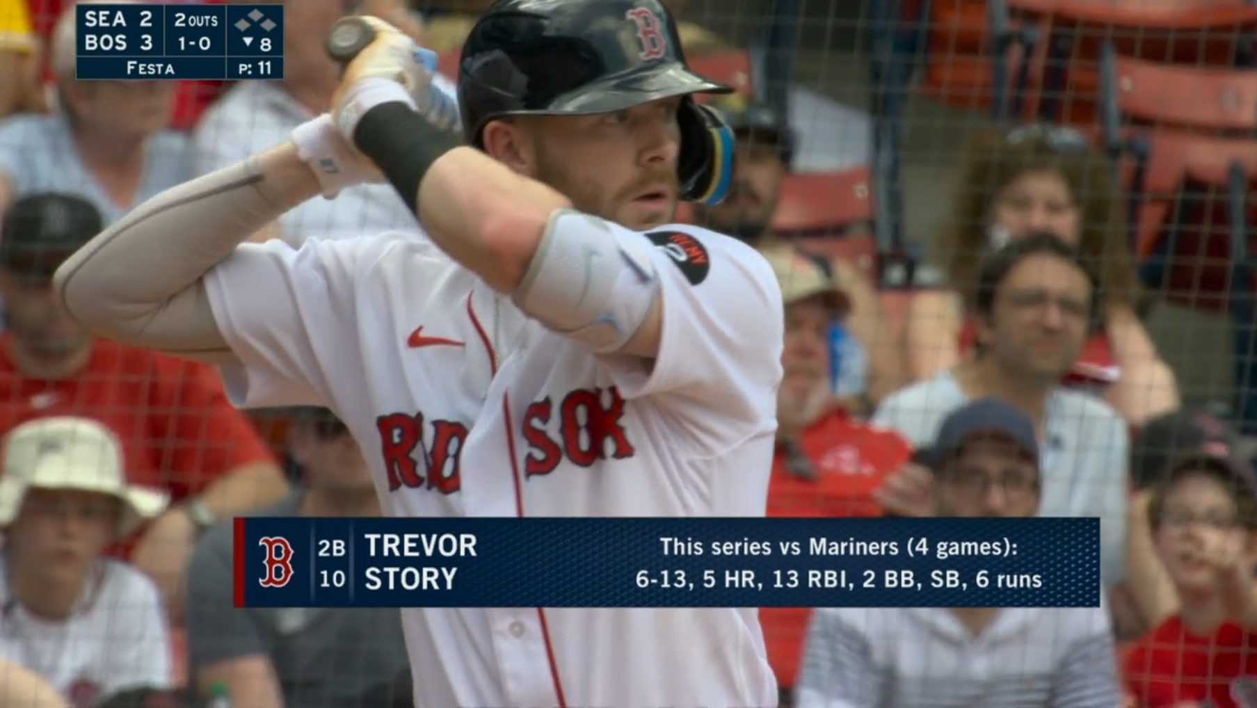 Since, than Trevor Story has been THE STORY, batting .333 (13-for-39) over the past 10 games with 8 HR’s, 22 RBI’s, 6 Walks and 3 Stolen Bases, including a 3 HR game against the Mariners in Fenway. After being booed early in the season against the Angels for his plate struggles Story has found his way into the heart of Boston fans. This is the man Boston signed to a 6yr $140mil deal in the offseason. His defensive skills have not been the issue, nor has any of Boston’s defense (aside from the bullpen). Last night Boston got it’s second 16 run game of the week… just saying that is insane, this is a team that was struggling to plate anyone and now has scored 100 runs over the last 13 games (since the game against the Texas Rangers.) It’s clear Boston’s offense has been revived by Trevor Story’s bat.