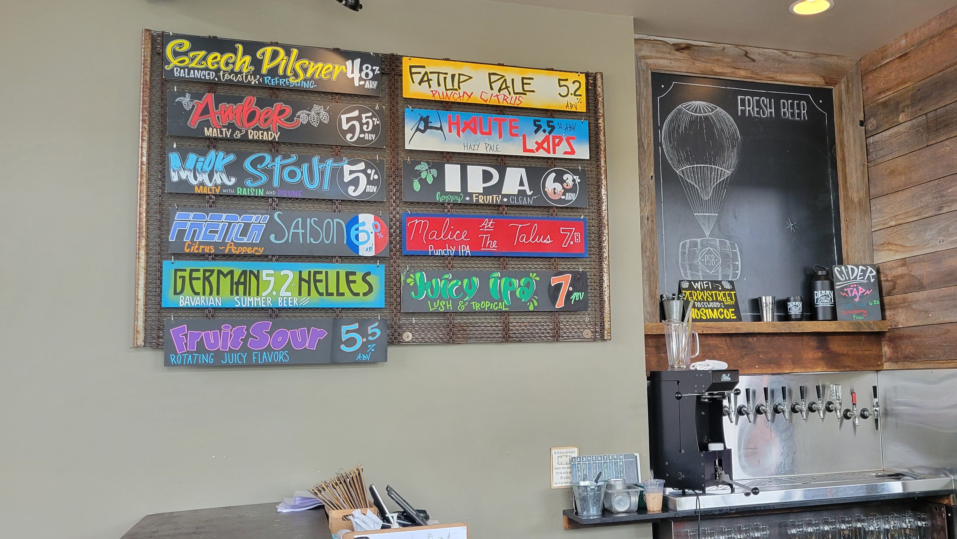This Memorial weekend I got to enjoy Perry Street’s awesome patio. Located curbside and facing Perry Street this patio offers great spring and summer enjoyment, with nearby shops and open skies hanging out here is a must for any local or traveler looking for a relaxing day. What’s interesting about Perry Street is that instead of flights they offer individual 4oz taster’s for $2 a taster. This gave me the opportunity to explore there Hazy, Sour, Milk Stout and German Helles all together ‘a la’ a flight.